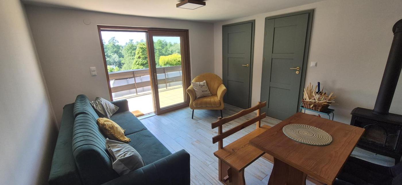 Domek z 1 sypialnią. This chalet features a fireplace. This chalet features 1 living room, 1 separate bedroom and 1 bathroom with a shower. Meals can be prepared in the kitchen, which has a stovetop, a refrigerator, kitchenware and an oven. The chalet has a tea and coffee maker, a seating area, a wardrobe as well as a terrace with garden views. The unit has 2 beds. Domek - 4 osobowy. Powierzchnia pokoju ok.: 35 mkw.