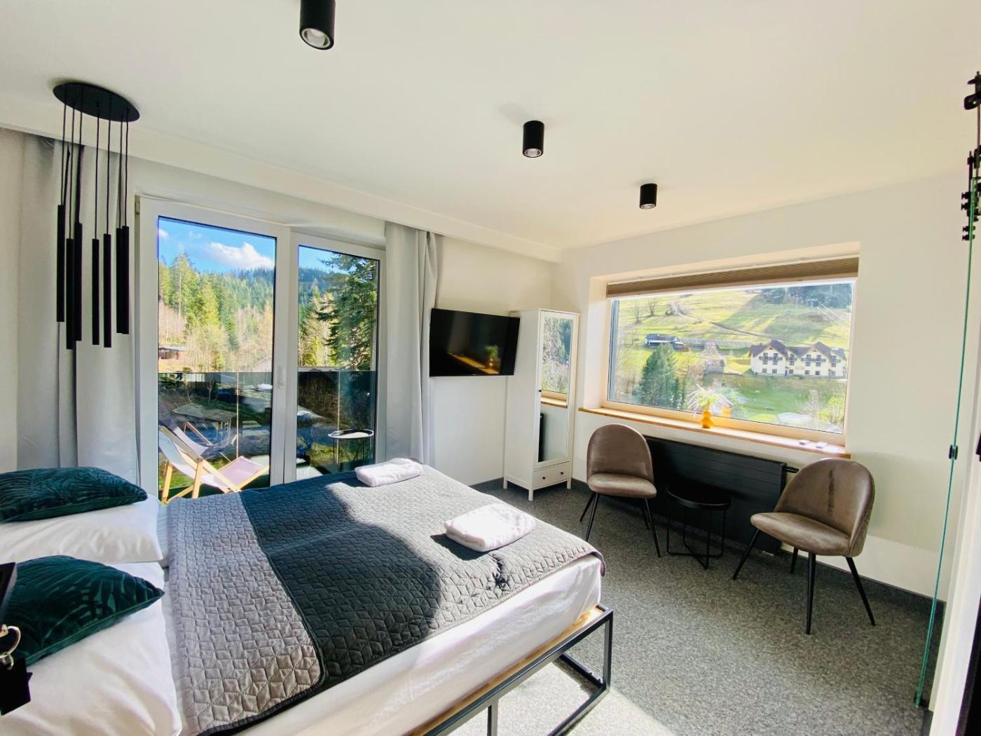 Pokój rodzinny z widokiem na góry. The fireplace is a top feature of this family room. This family room is comprised of a flat-screen TV with cable channels, a private bathroom as well as a terrace with garden views. The unit has 2 beds. Rodzinny - 4 osobowy. Powierzchnia pokoju ok.: 28 mkw. ;