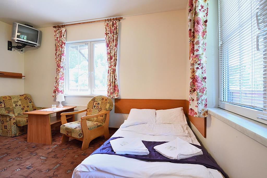 Pokój trzyosobowy. Offering free toiletries, this triple room includes a private bathroom with a shower. The triple room offers a wardrobe, an electric kettle, a carpeted floor, heating and a flat-screen TV. The unit has 2 beds. Pokój Trzyosobowy - 3 osobowy. Powierzchnia pokoju ok.: 12 mkw. ;