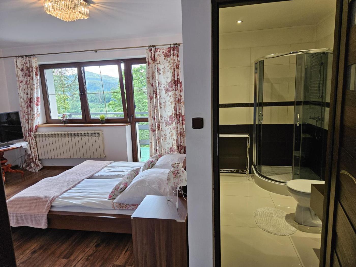 Pokój Czteroosobowy z balkonem. The quadruple room offers a private entrance, a seating area, a terrace with mountain views as well as a private bathroom boasting a shower. The unit has 3 beds. Pokój Czteroosobowy - 4 osobowy. Powierzchnia pokoju ok.: 35 mkw. ;